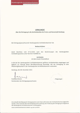 2015 Eintragung in die Architektenkammer (Bauvorlageberechtigung)